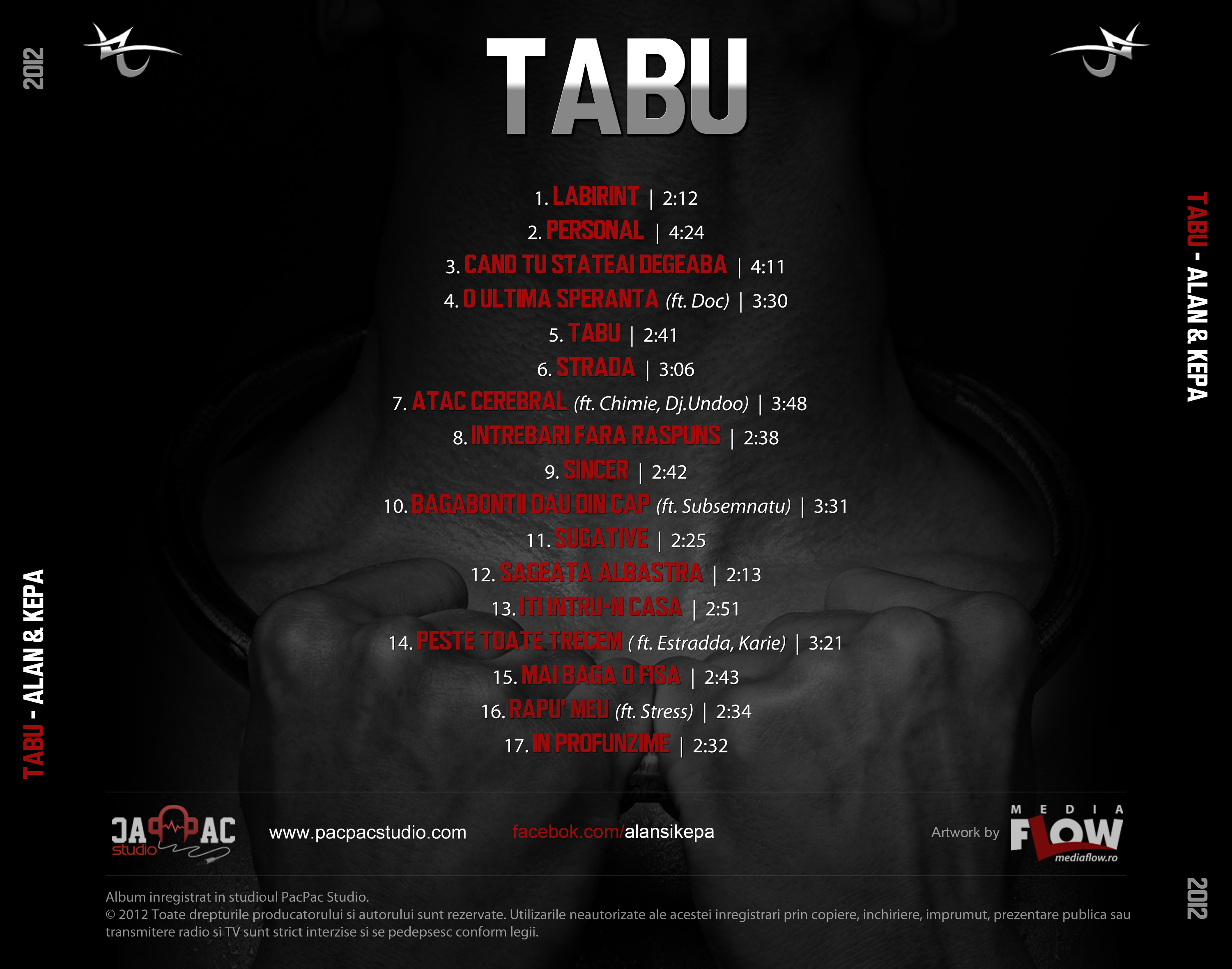 Alan & Kepa au lansat albumul „Tabu”! Acesta poate fi descarcat gratuit de pe site-ul www.pacpacstudio.com, iar cei care doresc varianta pe CD o pot comanda de pe acelasi site, incepand cu 1 octombrie.