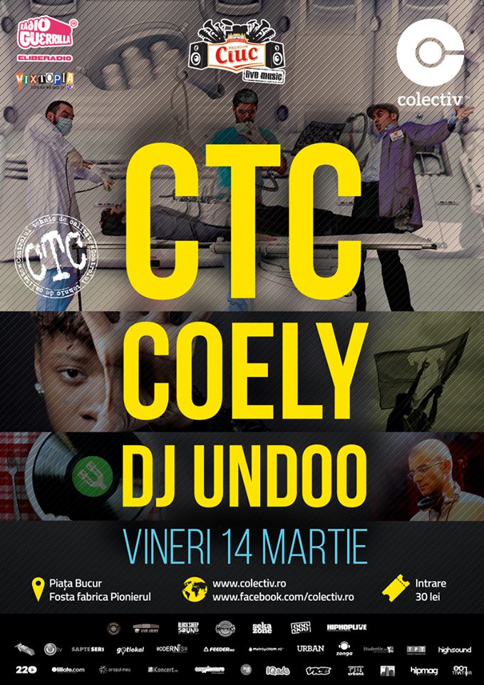 Câștigătoarea premiului întâi pentru Breakthrough Artist la Red Bull Elektropedia 2013 – Coely vine in România, în club Colectiv din București. După ce a cântat pe aceași scenă cu nume legendă din hiphop-ul internațional cum ar fi: Kanye West, Kendrick Lamar, Snoop Dogg, Nas, Jessie Ware, De La Soul, tânăra revelație female MC; va urca pe scenă alături de CTC și Dj Undoo.