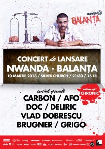 Nwanda, ne invita pe 10 martie in Silver Church unde va avea loc lansarea primului sau album solo, “Balanta”. Intrarea se va face incepand cu 21:30, pretul unui bilet fiind de 15 lei.