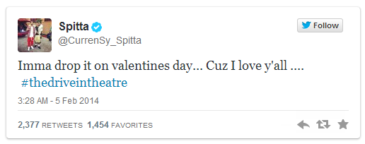 Curren$y tocmai ce a postat pe Twitter noua sa copertă pentru albumul următor. Acesta a spus următoarele: „Imma drop it on valentines day… Cuz I love y’all….#thedriveintheatre” (rom. Voi scoate acest album chiar de Valentine’s Day – pe 14 februarie – pentru că vă iubesc pe toți).
