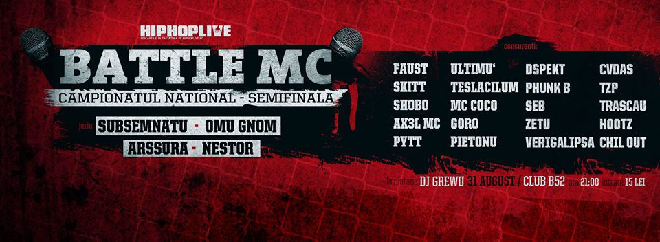 L-aţi aşteptat, a venit. Pe 31 august, în clubul bucureştean B52, s-a desfăşurat semifinala celui de-al doilea campionat naţional de Battle MC. Odată cu trecerea timpului, emoţiile deveneau tot mai mari atât pentru concurenţi, cât şi pentru organizatorii de la HipHopLive. Timpul trece tiptil şi la ora 21:00 se deschid porţile pentru participanţi şi spectatori. O coadă neaşteptată se lasă aşteptată pentru pătrunderea în clădire. Oamenii plătesc 15lei pe bilet cu zâmbetul pe buze şi aşteaptă un spectacol ce le va fi tipărit în minte. Maestrul de ceremonii a fost Maich, membru Urbankart. Juriul este format din Arssură, Subsemnatu, Omu Gnom şi Nestor. Un juriu numai bun pentru o asemenea semifinală, fiecare dintre ei având în sânge ODD-ul. În club îşi fac prezenţa şi nume cunoscute ale hip hop-ului românesc: Flou Rege, Cerbu, Stress, ERPS, Kazi Ploae, Silent Strike, Aforic, Krem, Smokey ş.a. De muzică a fost responsabil DJ Gre Wu. Deşi evenimentul trebuia să debuteze în juriul orei 22:00, semifinala a început la ora 23:30 din cauza unor participanţi. Primul meci din Grupa A este reeditarea semifinalei din finala primului campionat naţional de Battle MC: Faust vs Shobo.